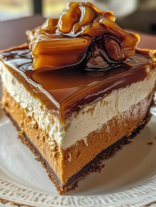 • 🍮✨ Caramel Pumpkin Cheesecake Bars with Creamy Vanilla Layer